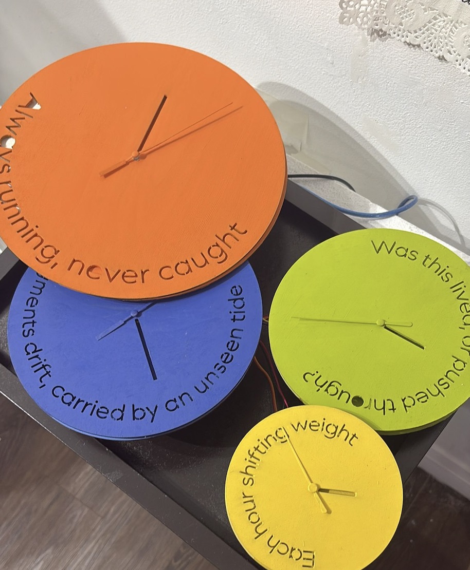 Unlike the first piece, which I created in just two days, this work developed over the span of a week. That extra time gave me space to experiment with color, refine the structure, and think more deeply about my relationship with time. The process helped me begin to untangle some of my anxieties about time and move toward a place of greater comfort with it.